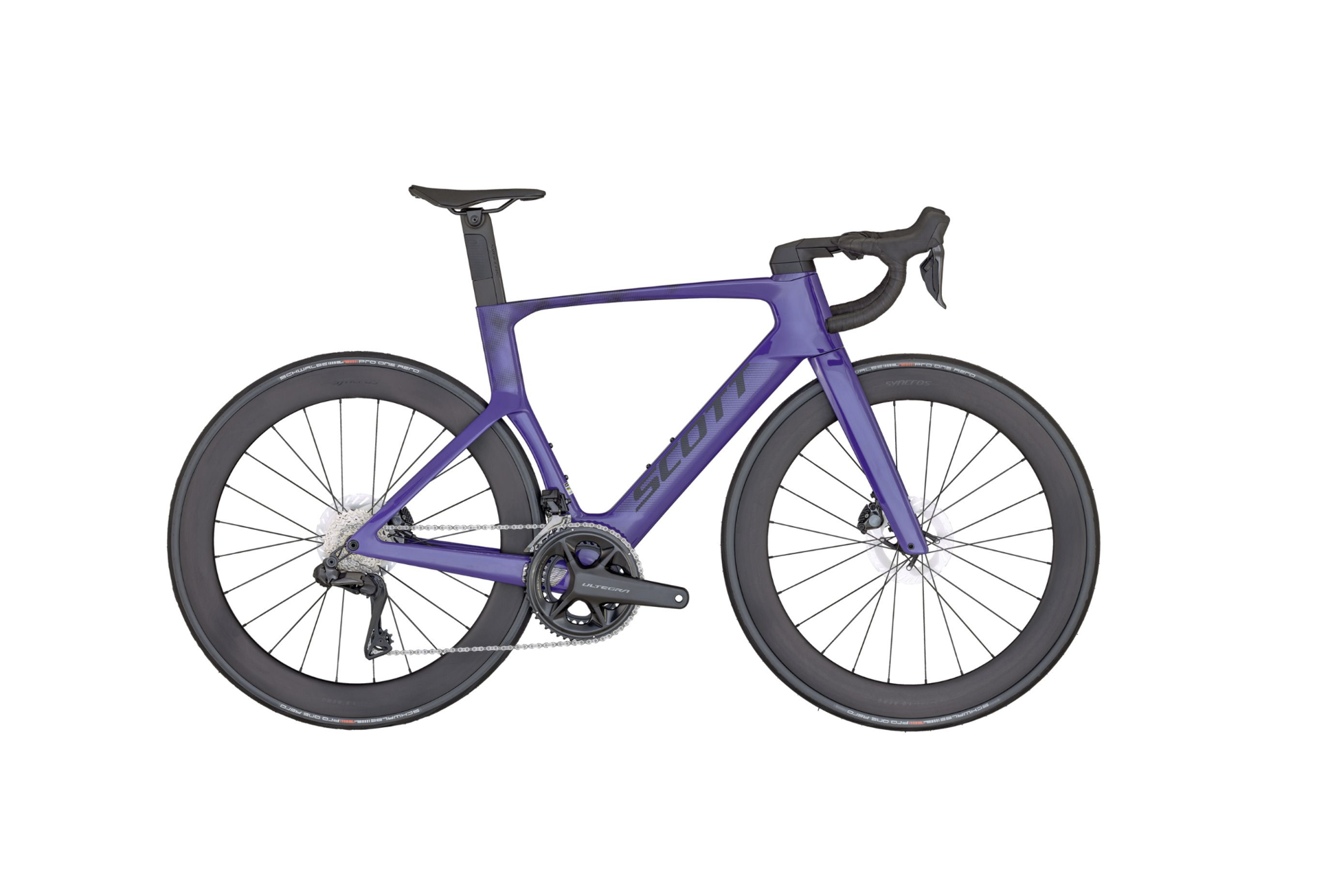 Shimano Ultegra Di2 24-speed electronic shifting provides fast, precise and reliable gear changes in all conditions. The Syncros Capital 1.0 Aero 60 wheelset enhances aerodynamic efficiency and high-speed performance, while Schwalbe PRO ONE Aero tubeless tyres deliver low rolling resistance and confident grip.